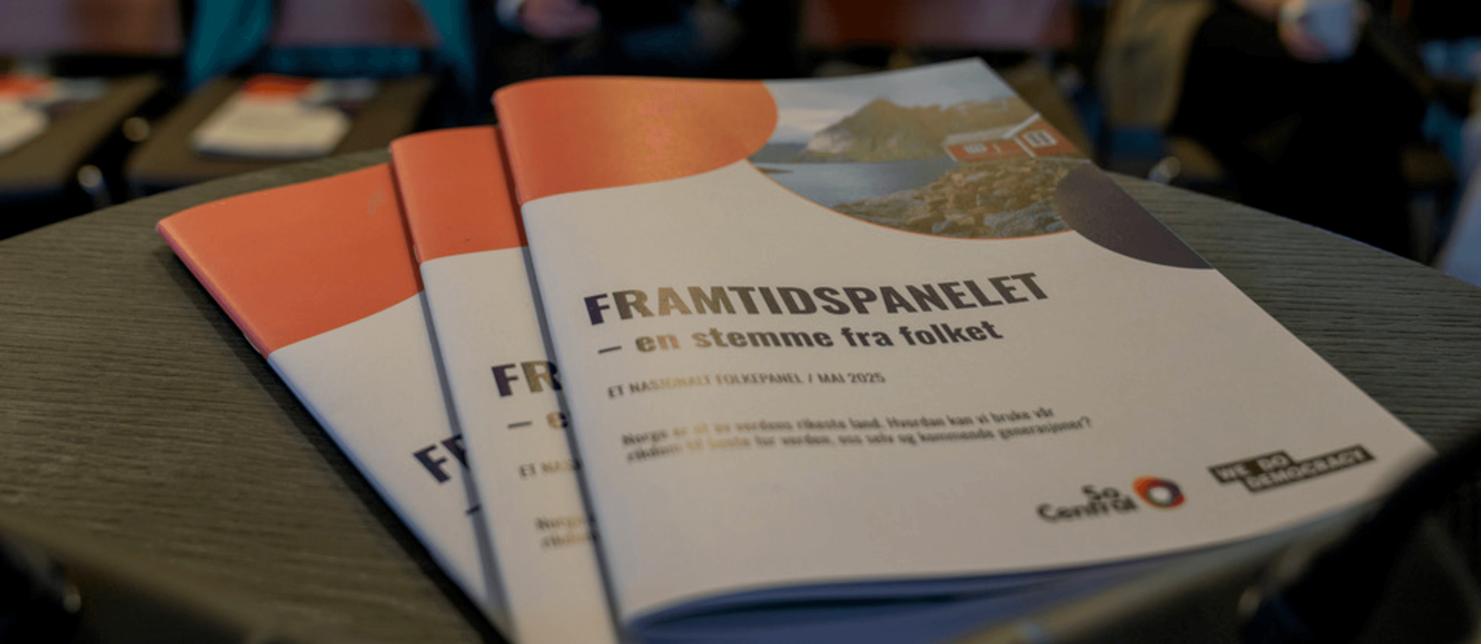 Framtidspanelet er et nasjonalt og uavhengig folkepanel, som leverte sine anbefalinger på Stortinget 13.mai 2025. Panelets medlemmer inviterer nå hele befolkningen med på en åpen og samtale om hvordan Norge kan bruke vår rikdom til beste for verden, oss selv og kommende generasjoner. Framtidspanelet møtes igjen 26.august. Da vil alle innspillene som er lagt inn her, kommentarer som har kommet i medier og samtaler medlemmene har hatt i sine lokalsamfunn over hele landet, behandles og diskuteres. Framtidspanelet vil så komme med en felles uttalelse i forkant av Stortingsvalget 2025.
